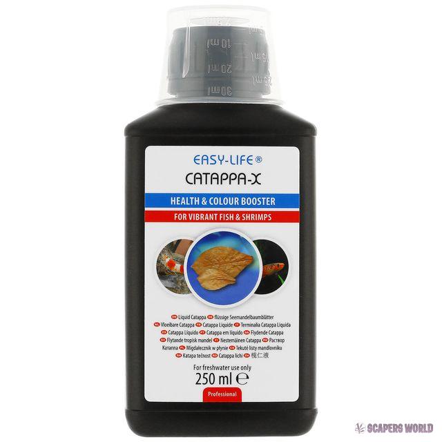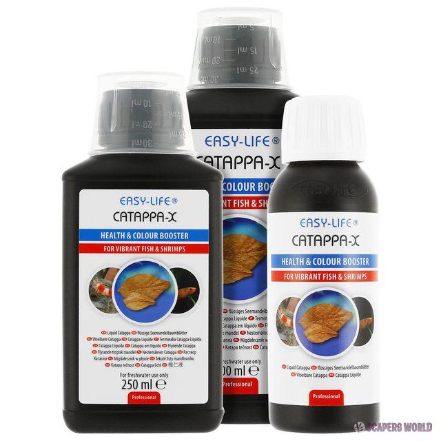 Catappa-X ist die Antwort auf diese Probleme. Es verfärbt das Wasser nicht und verursacht keine zusätzliche Wasserverschmutzung. Es senkt die Keimdichte, so dass die Gefahr von Krankheiten stark reduziert wird. Catappa-X lässt Fische und Garnelen viel besser gedeihen und bewirkt eine intensive Färbung.